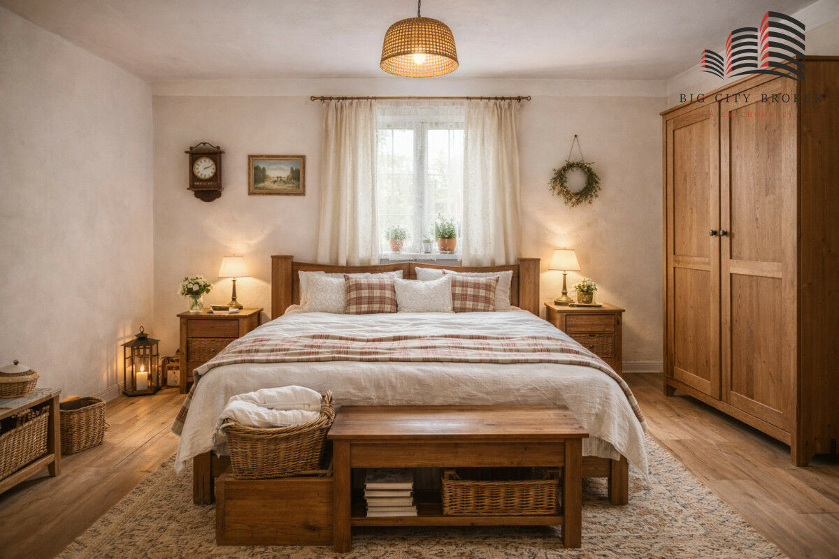 Aktualnie ogrzewanie realizowane jest przez piece kaflowe. W budynku nie ma łazienki, natomiast jest wydzielone pomieszczenie, które świetnie nadaje się na jej wykonanie.